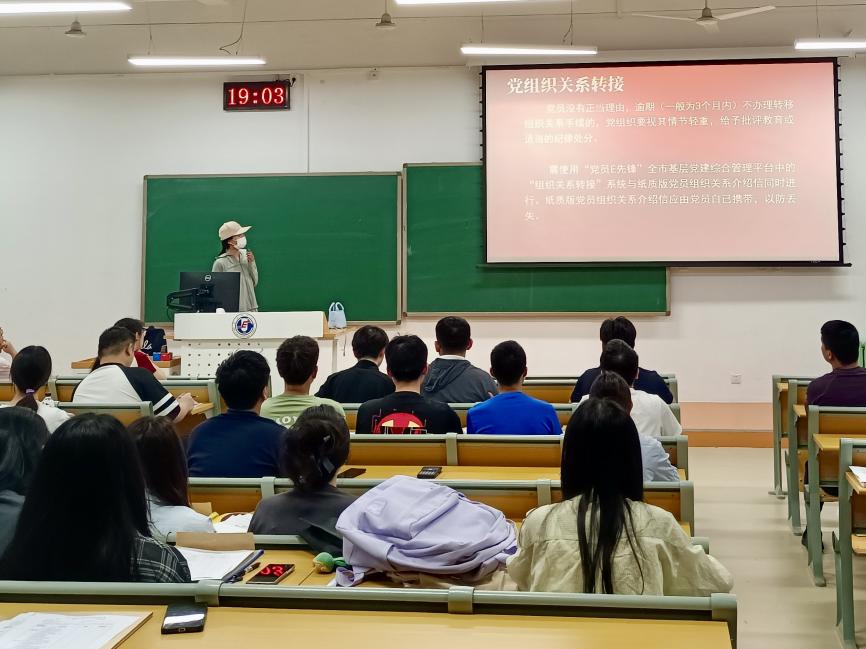 田化润围绕“党员档案自查”工作进行了详细说明。她强调了党员档案的重要性,并逐一讲解了党员档案中各项材料的具体内容和填写要求。要求毕业生党员认真核对自己的党员档案,确保材料齐全、信息准确,为顺利转接组织关系奠定坚实基础。她还就党员组织关系转接的流程和注意事项进行了说明,并现场解答了党员同志们提出的问题。
