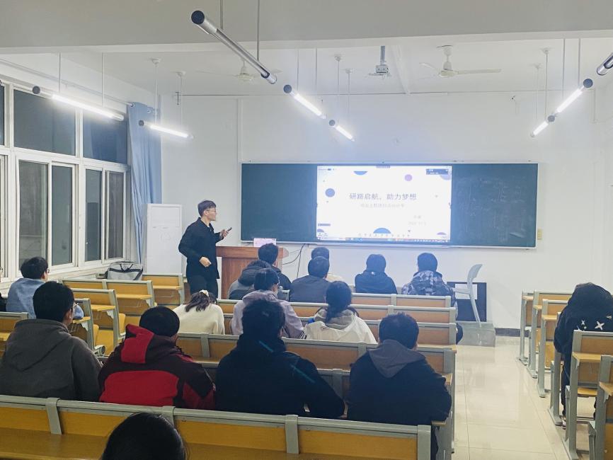 为引导新生及时适应研究生学习生活,对个人科研学业与职业生涯做出清晰规划,2023年11月5日,澳门六合彩内幕资料 在沙河院区励精楼408教室开展研究生“朋辈领航”分享交流会,2023届硕士毕业生李建、孙爽,2021级博士周新越主讲,2023级研究生参会。会议由研新能源2355班团支书高兆文主持。