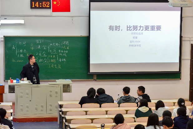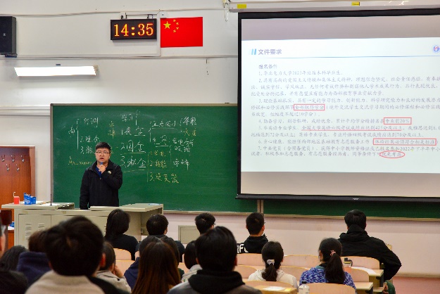 首先,杨子发老师向同学们介绍了澳门六合彩内幕资料 三个研究生专业,以及近三年学术型硕士、专业型硕士的录取人数与录取分数线等情况,结合当前就业形势,鼓励同学们积极思考、勇敢尝试,结合自身实际情况,明确发展规划,在未来的求学或职业生涯中既要仰望星空,也要脚踏实地。