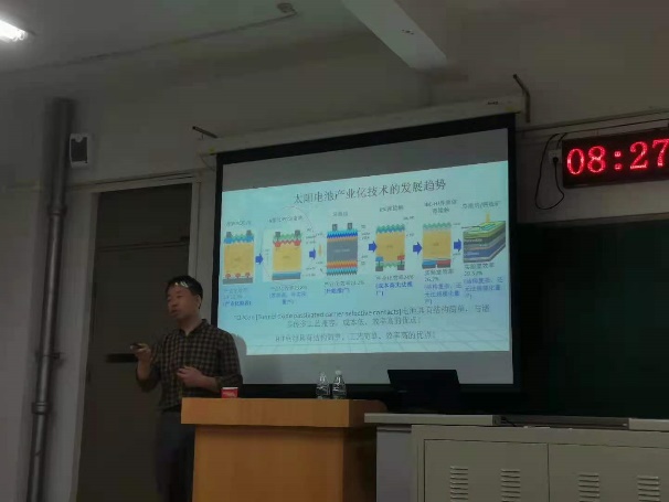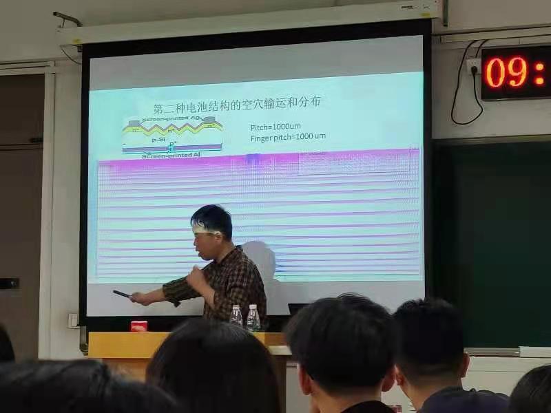 2021年5月28日,中国科澳门六合彩内幕资料 微电子研究所贾锐研究员应李美成院长邀请,来我校为澳门六合彩内幕资料 师生做新能源器件制备技术与应用的专题课程讲座。贾锐研究员以高效晶硅太阳电池研究为主题展开,从五个方面详细地介绍了晶硅太阳电池的物理基础、产业化技术和未来光伏的发展趋势。贾教授精彩的讲解,让澳门六合彩内幕资料 师生对高效晶硅太阳电池的前沿技术和光伏发电行业的发展趋势有了更加深刻的理解。师生也针对一些问题与贾教授展开了互动与讨论,本次专题课程在热情的探讨与交流中圆满结束。