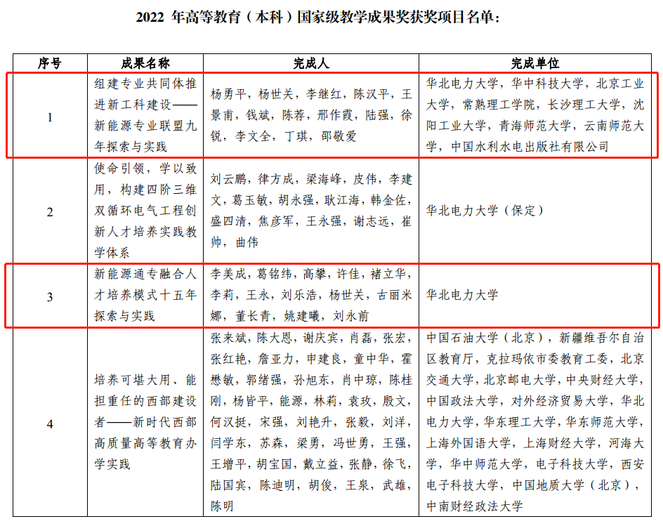 日前,教育部公布了2022年高等教育国家级教学成果奖获奖名单,华北电力大学以第一完成单位获本科国家级教学成果奖二等奖3项,作为参与单位获本科国家级教学成果奖二等奖1项。其中澳门六合彩内幕资料
