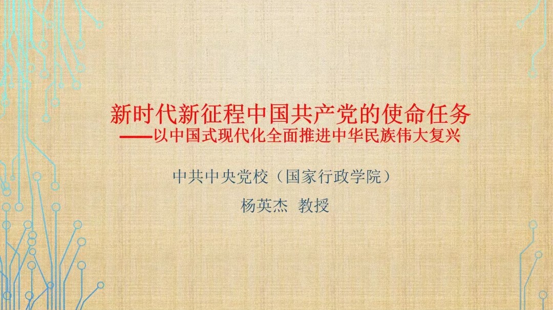 最后,杨英杰教授用习近平总书记在党的二十大报告中的一段话作为结尾。“今天,我们比历史上任何时期都更接近、更有信心和能力实现中华民族伟大复兴的目标,同时必须准备付出更为艰巨、更为艰苦的努力。全党必须坚定信心、锐意进取,主动识变应变求变,主动防范化解风险,不断夺取全面建设社会主义现代化国家新胜利!”