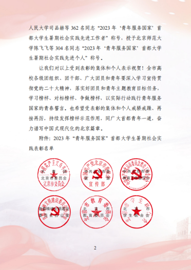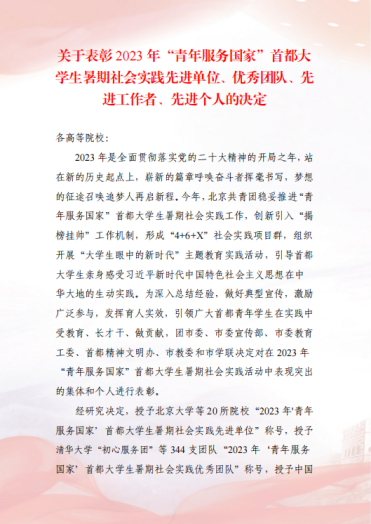 喜报!澳门六合彩内幕资料 师生在2023年“青年服务国家”首都大学生暑期社会实践活动中荣获5项荣誉