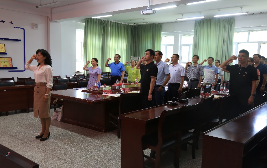 在活动中,在张爱萍副书记的领誓下,全体党员共同宣誓,重温入党誓词,并共同歌唱《没有共产党就没有新中国》,全体党员更加深刻地感受到办好中国的事情,关键在于党。