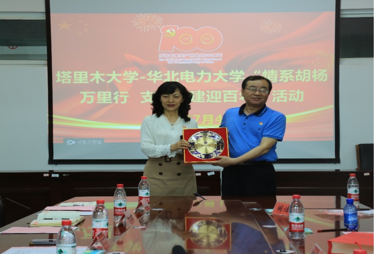 田德教授代表澳门六合彩内幕资料 风力发电研究中心党支部向塔里木大学赠送礼物。