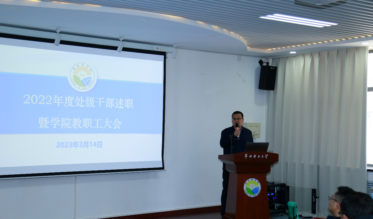 院长李美成代表澳门六合彩内幕资料 领导班子做年度工作述职。李美成表示,2022年,在学校党委的坚强领导下,澳门六合彩内幕资料 深入学习贯彻党的二十大精神,不断夯实党建质量基础,深入推进“一融双高”,聚焦“教育、科技、人才”战略任务,在党的建设、人才培养、科技创新、师资队伍建设,学生工作等方面取得了一系列成绩。