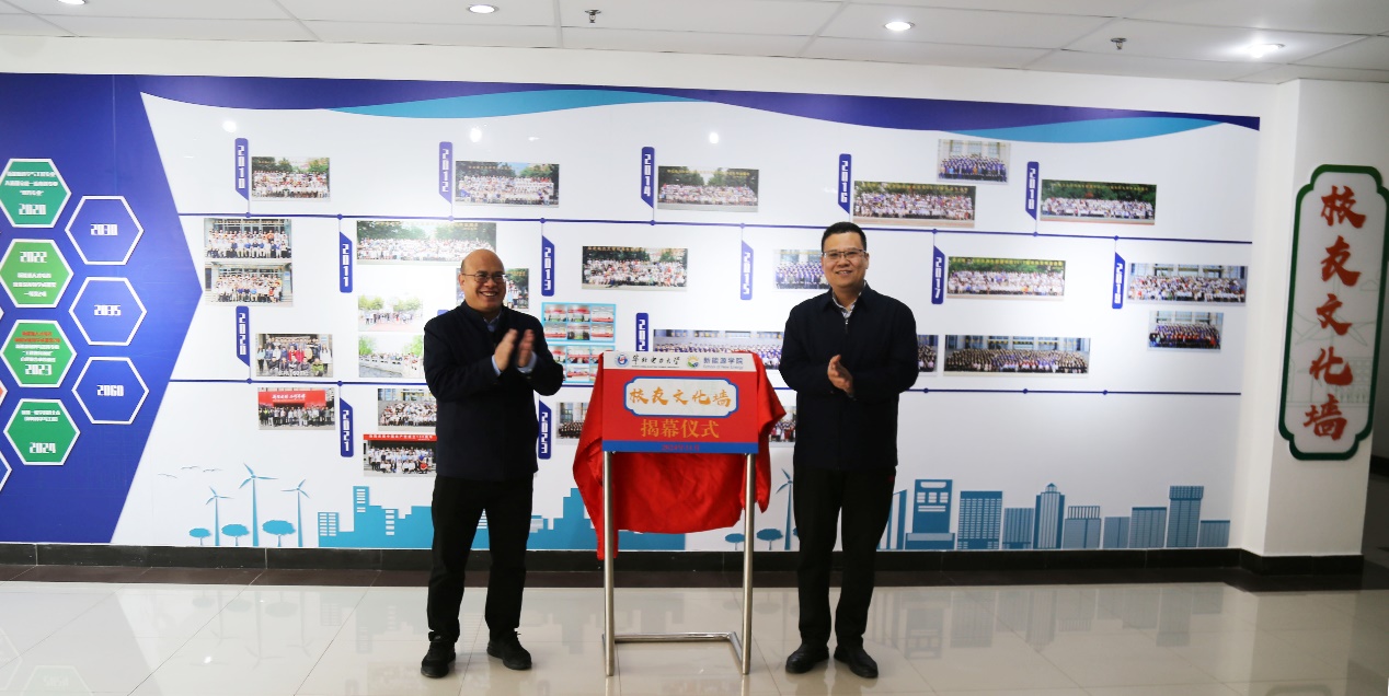 宫凯与黄向军携手为校友文化墙揭幕。